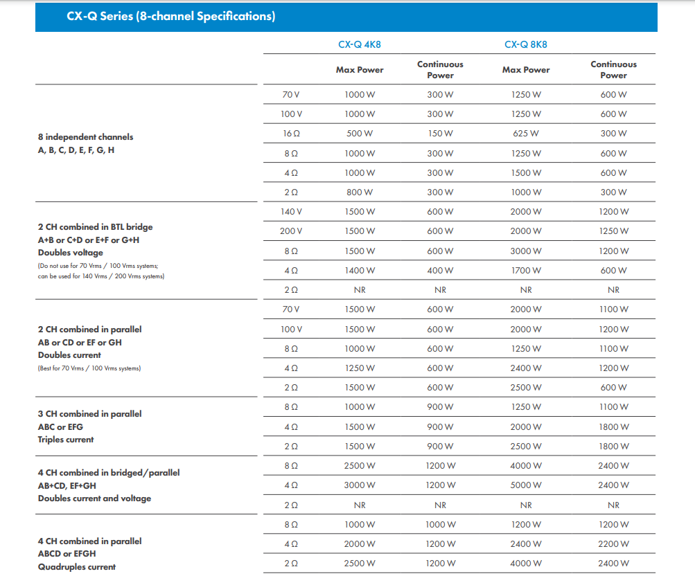 • 高達(dá)8000W總輸出功率,全部通道均支持定阻,或70V,100V定壓輸出。