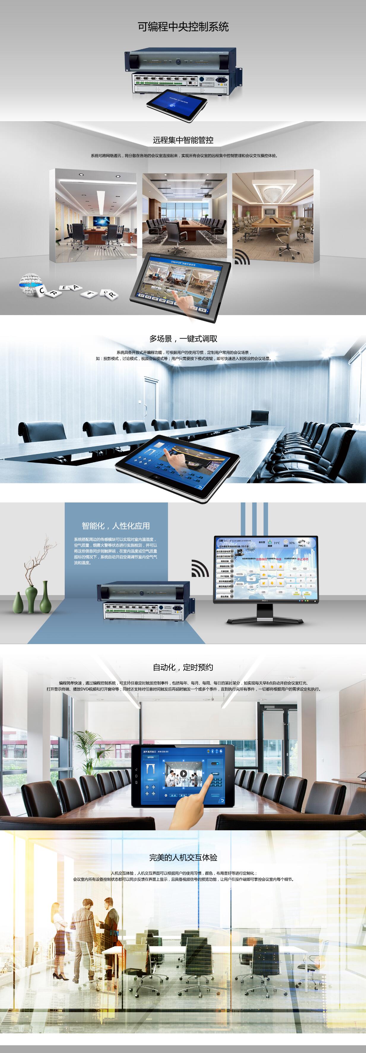 8.支持與電力載波兼容:支持中控系統(tǒng)直接對接電力載波平臺,可以通過互聯(lián)網(wǎng)遠(yuǎn)距離控制會議室的空調(diào)開關(guān)、燈光開關(guān)、窗簾開關(guān)、大功率插座等;