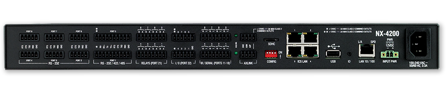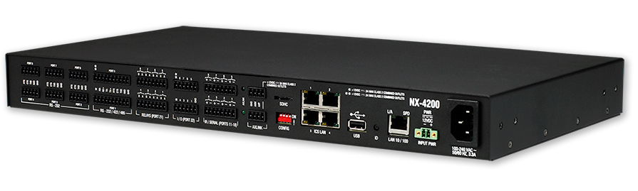 - NX-4200 采用冗余電源、內(nèi)置以太網(wǎng)交換器和各種強(qiáng)化安全功能(例如采用 POE 的 Dual NIC),能夠在 NX 系列集成控制器中集成大數(shù)量的設(shè)備,包括投影儀、照明、DVD 和藍(lán)光播放器、恒溫控制器及其他電子設(shè)備。