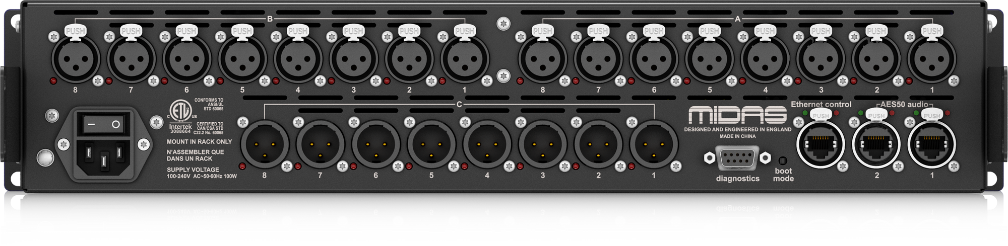 16個(gè)模擬輸入,采用MIDAS經(jīng)典模擬話(huà)放帶+48 V 幻象電源